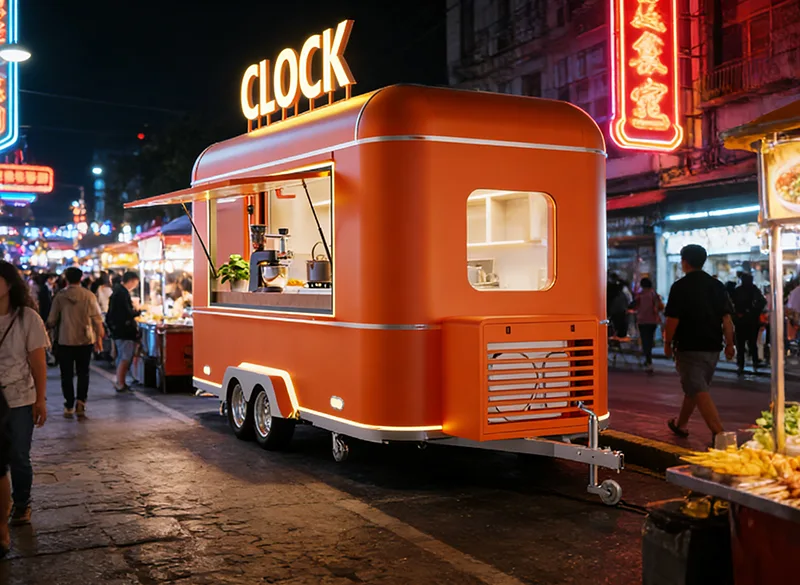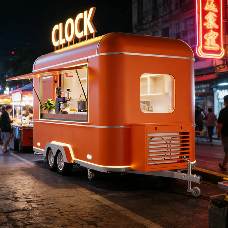 Laŭ grandeco, diversaj specifoj estas disponeblaj, kiel 4-8 metroj, kiuj povas esti personecigitaj laŭ la komerca skalo kaj manĝobezonoj de la franĉiza marko. La interno adoptas normigitan sekcion, kiu strikte kongruas kun la operaciaj procezoj de la marko, dividante la spacon en kuirado, preparado, stokado kaj vendaj areoj por plibonigi liveran efikecon kaj funkcian normigon. Pliaj ekipaĵoj inkluzivas faldeblajn, larĝigitajn labortablojn, polvorezistajn kaj makulajn vendajn fenestrojn, kaj pluvajn kaj sunajn markezojn, taŭgajn por rapida liverado dum pintaj horoj kaj tuttaga subĉiela servo. Kompare kun fiksaj franĉizaj vendejoj, Trailer Kitchen Equipment havas pli malaltajn investkostojn, pli rapidan reproduktadrapidecon kaj flekseblan eniron en kernajn klientajn trafikareojn. Ĝi estas ideala elekto por franĉizmarkoj vastigi sian merkaton kaj por franĉizuloj eniri la merkaton je malalta kosto.