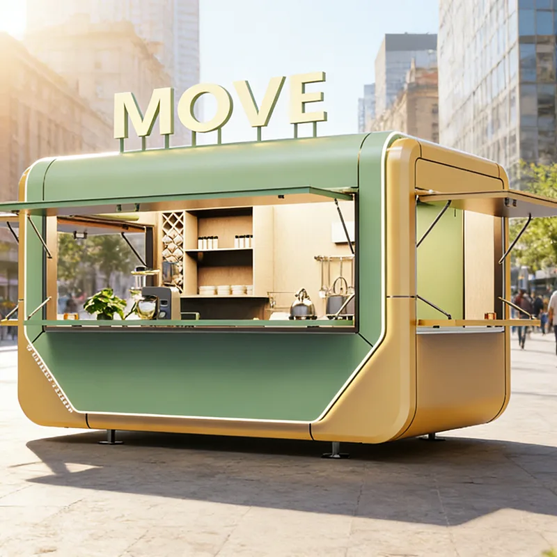 Poŝtelefonaj Manĝejo-Unuoj estas haveblaj en diversaj grandecoj de 1.5 ĝis 8 metroj, ebligante precizan personigon por konveni malsamajn funkciajn skalojn kaj moveblajn bezonojn. La interna aranĝo estas fleksebla kaj alĝustigebla, kun bone difinita divido inter kuirado, preparado, stokado kaj vendaj areoj, taŭga por ambaŭ etaj rapidmanĝejoj kaj grandskalaj grupaj manĝoprovizoj. Ekipita per sunŝirmiloj kaj pluvrezistaj kanopeoj, disetendeblaj laborbenkoj kaj polvorezistaj bariloj, ĝi plibonigas subĉielan adapteblecon kaj spacan uzadon. La ekstero povas esti plene personecigita, korpigante elementojn kiel farbo, emblemoj kaj lumkestoj por plibonigi markrekonon. Kompare kun unuformata movebla manĝoproviza ekipaĵo, ĝi ofertas pli grandan kongruecon kaj pli larĝan aplikeblecon, igante ĝin plurfunkcia aparato, kiu kombinas praktikecon kaj flekseblecon.